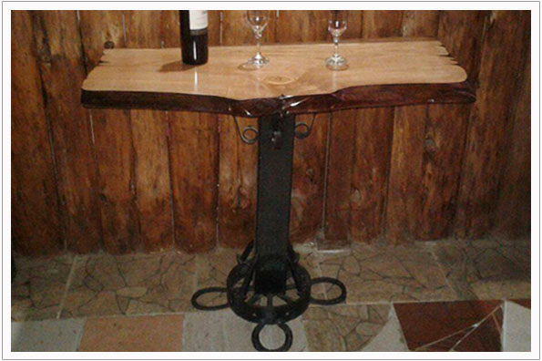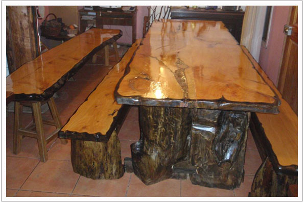 Mesa de madera nativa de hualle y pata metalica